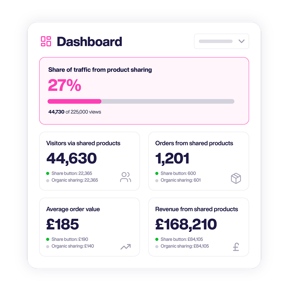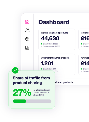Track sharing by SKU, category, or product launch to see what converts