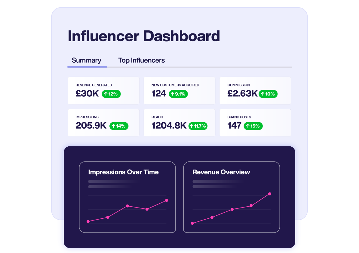 Make your influencer spend accountable with performance-based tracking.