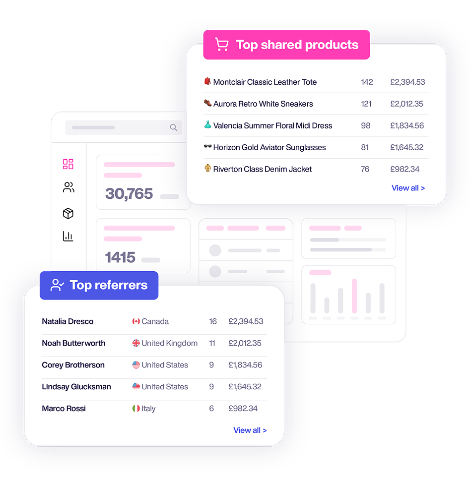 Follow each referral from the first share to the final purchase. See which customers bring in revenue and the value of their referrals using the finance tools you already have.
